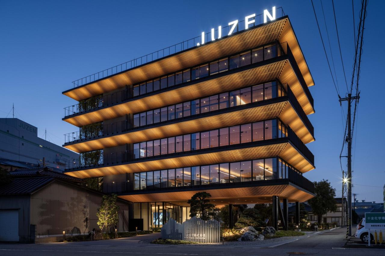 Juzen Chemical Corporation, founded in 1950 in Toyama City, is a contract manufacturer of active pharmaceutical ingredients. Situated between the Jintsu River and the Fugan Canal within an industrial park, the company decided to consolidate its dispersed offices, meeting rooms, and cafeteria into a new headquarters. The new building not only addresses operational efficiency but also reflects Toyama’s natural environment and cultural heritage, while offering a workplace that enhances employee well-being and connects with the surrounding community.