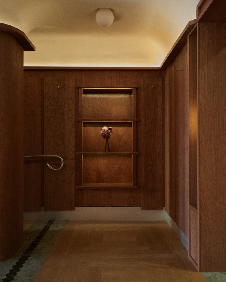 The aforementioned decorative elements are reflected by patterned wood floors with stone inlays, intricate custom mouldings, and cherry wood window screens, lending the settings a subtle sense of luxury. The back room is centred around a custom display case beneath a coved ceiling and flanked by two Japanese inspired, plant-filled atriums. Here, changing rooms are treated as extensions of the architecture, and come in high-gloss lacquer, European detailing, and layered lighting. Given the intricately calibrated atmosphere, it isn’t surprising there’s a special focus on lighting, incorporating a blend of present and past modernist design. As such, a carefully curated assortment of vintage Bruno Munari, Vico Magistretti, Lisa Johansson-Pape, and Paavo Tynell lighting has been paired with contemporary designs from Kelly Wearstler and HENRII. The new Malbon store store carries the full range of apparel, accessories, bags and shoes. © superfuture