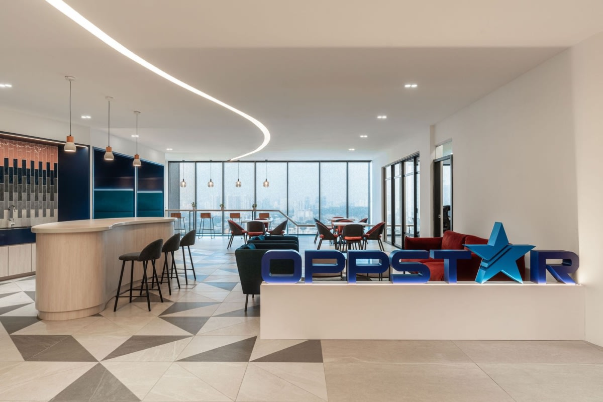 Oppstar embraced a modern Scandinavian design, characterised by mindful space utilisation and a sleek neutral palette accented with shades of blue to reflect their corporate identity. Featuring clean lines and expansive open areas, this design approach exhibits a sense of structure and lightness. Strategic bursts of vibrant colours introduce elements of energy and playfulness, creating a dynamic and inspiring environment for the team.