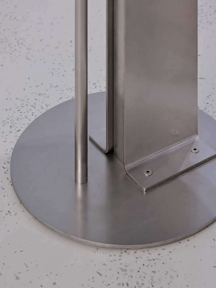 The entrance handle is crafted from flat metal, designed so the door can be opened with an intuitive gesture, removing the need to think about whether to push or pull. By making the handle only wide enough for a single palm, the design reduces the act of pressing a hand against the glass to push the door and instead guides the user experience toward a cleaner and more refined interaction.