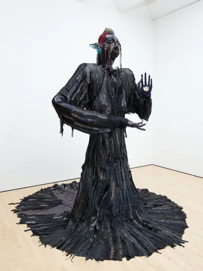 Some of the new works were gifted (eg. Nara’s urethane-coated bronze sculpture Long Tall Peace Sister, 2024, which came via Maria and Tim Blum) while others, like Sheila Hicks’s soft sculpture Rempart, 2016, Goldin’s photo Lola Modeling at The Other Side, Boston, 1972, and Lenore Chin’s painting The Family, 1991, were acquired via the museum’s deaccession fund.