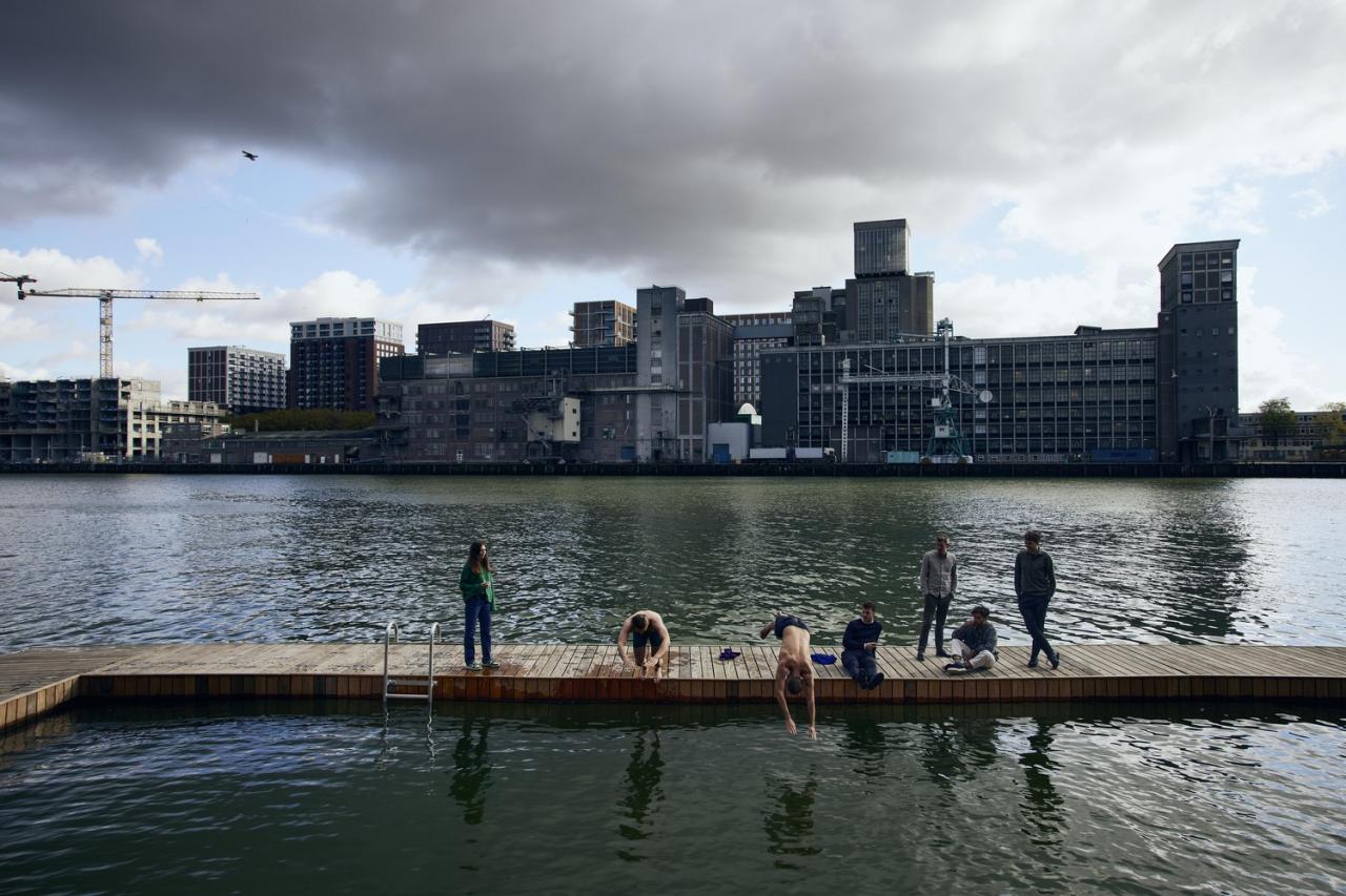 Moored at Rijnhaven port in Rotterdam, Powerhouse Company’s floating office for the Global Center on Adaptation is a building for a new age. Self-sufficient and carbon-neutral, it will float – rather than flood – if water levels rise due to climate change. Fun as well as functional, it also forms a key element in a newly redeveloped port environment by providing public waterside space – and even a swimming pool.