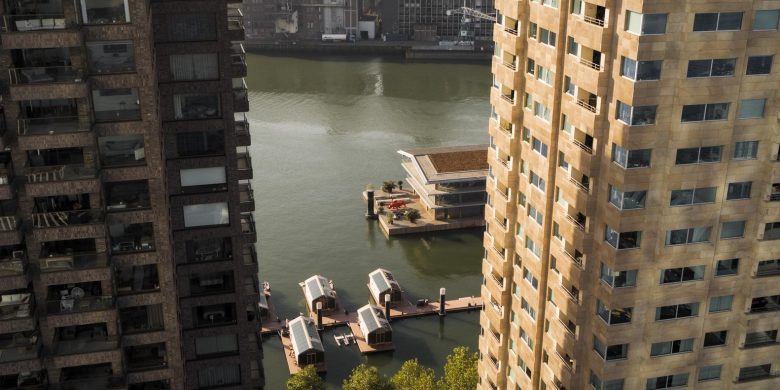 FOR the future – We designed our floating office to reflect the values of its inhabitants: the Global Center on Adaptation (GCA). This Rotterdam NGO aims at promoting planning, investment, and technology to mitigate climate change. Our climate-resilient head office is both an illustration of the center’s mission and an inspiration for others. With its own solar energy source and water-based heat-exchange system, it’s completely self-sufficient. Besides GCA, FOR is home to ABN AMRO, RED Company, Powerhouse Company, and the restaurant Putaine.