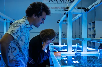 After showing me the corals that are bound for the Reefline, which are visually pretty understated, Foord took me next door to see the corals he cultivates at Coral Morphologic’s quarters. It was, as he promised, like stepping into a blacklight poster—truly mind-blowing. Coral are the world’s most fluorescent life form, he said, which poses an evolutionary question: Why? Maybe, he muses, their color attracts humans to care for them. He’s been growing coral in his tanks for three decades. “We can learn from these libertarian communists,” he said, adding, “It’s less about us saving them than them saving us.” They’ve been building thriving communities for hundreds of millions of years, he said.