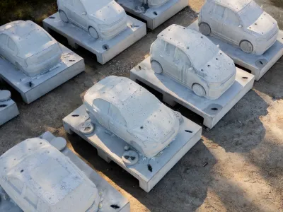 During Art Basel Miami Beach in 2019, the city commissioned Erlich to create Order of Importance, a site-specific installation with sixty-six life-size sand sculptures of cars and trucks in a traffic jam on the beach, his largest piece to date at that time. When Foord saw the piece, the car’s shapes reminded him of naturally occurring coral heads, and he suggested to Caminos that they could be reproduced on the ocean floor as a hybrid coral reef. (She was skeptical at first but soon came around.) A forest growing over a fossilized concrete traffic jam has a certain resonance, as the city’s traffic is notorious; U.S. News and World Report recently ranked Miami sixth-worst among American cities.