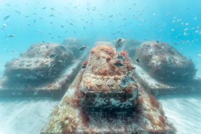 The installation, Caminos notes, “could be poetic, or catastrophic, or both. You could be seeing Pompeii.” Some skeptics, thinking them ugly, asked, “Why cars?”, but she explains that the piece turns a symbol of pollution into a symbol of transformation. (Skeptics might also note that concrete has a massive carbon footprint, but the material does provide a hospitable bed for coral to grow on.)
