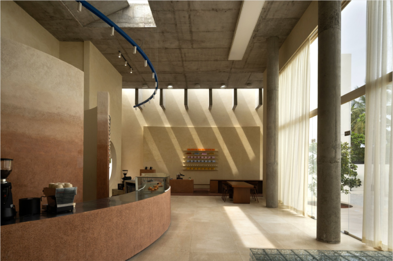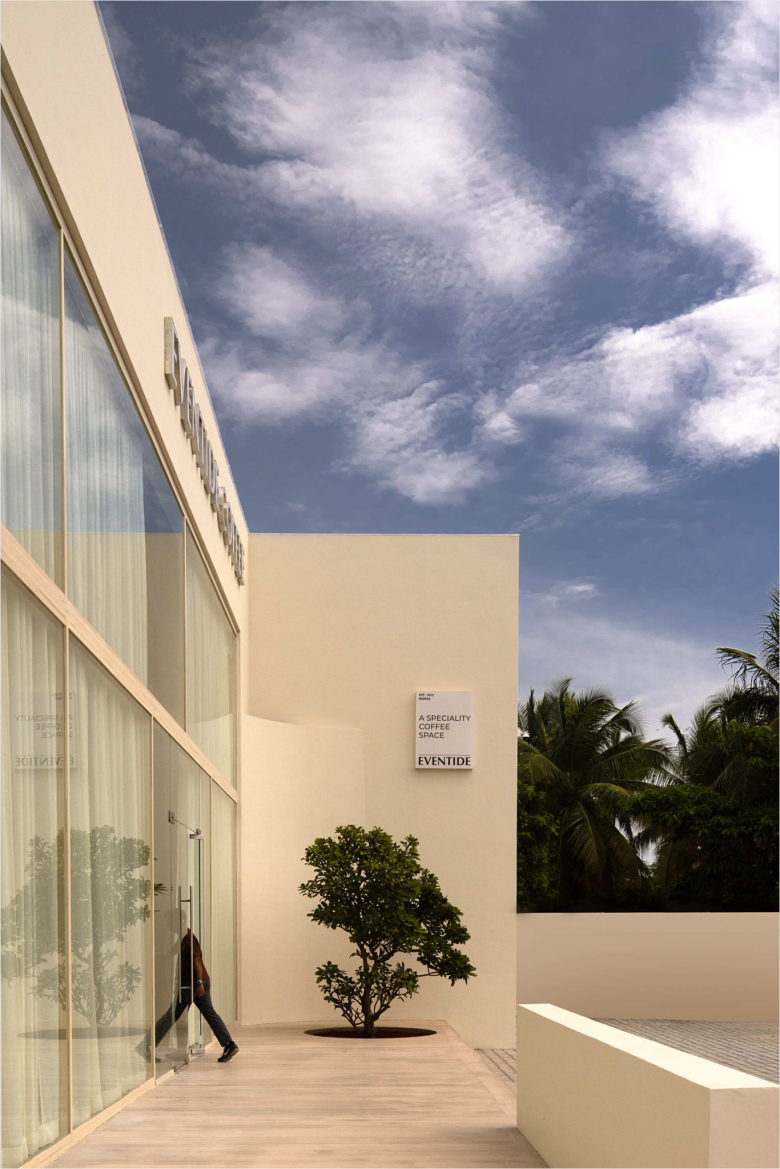 Coffee culture continues to evolve across the planet, and especially in countries with the most disposable income we’ve seen the most interesting formats popping up, offering either specialty blends, alluring design-led settings, or simply both. Mind you, the coffee parlour has even become a gentrification or wealth indicator for many a neighbourhood. Straddling the expanse of the Indian Ocean, the Akkarai area is an emerging leafy area in Chennai, one of India‘s biggest cities. Largely residential, it may lack the level of lifestyle businesses of the equally upscale, southern Panaiyur neighbourhood, but this is slowly changing, and the recent opening of the Eventide café is indicative of this trend.