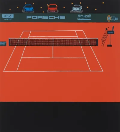 Jonas Wood, Porsche Tennis Grand Prix, 2025. © Jonas Wood. Courtesy Gagosian. Photo: Marten Elder