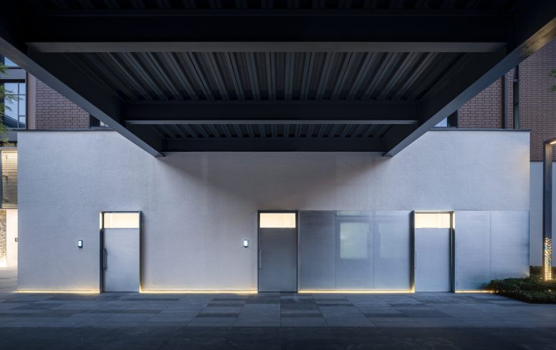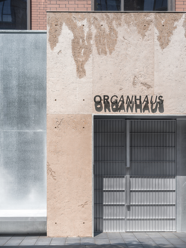 part 01. An Interface — We cloaked the building in a pioneering metal curtain—a bounded veil that opens a dialogue with its surroundings. At the entrance, a sliding metal door alternates between transparency and solidity, allowing nature to permeate the threshold. On the opposite side, the custom made metal gate for Organhaus follows a gridded, mechanical logic—a foldable entrance that continues Organhaus’s spirit of artistic experimentation, resembling a hangar door embedded in the mountain city, open to artists and creators. Dense silent gravel, flowing water features, and lush landscaping are woven into a mountain interface. The warm, humid climate of the Southwest naturally seeps into the building’s fabric, creating a “limite perceptive”—a perceptual boundary that asserts a contemporary presence within the existing industrial campus.