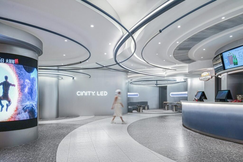 The design concept draws inspiration from the streaks left by stars slashing across the pre-dawn sky. These star trails represent time’s passage, each star’s arc marking a fleeting moment. Countless intertwining star trails compose the cosmic timeline. Cinema itself, an art form of time, transports the audience on a condensed journey through a lifetime or a fantastical adventure within a mere two hours.