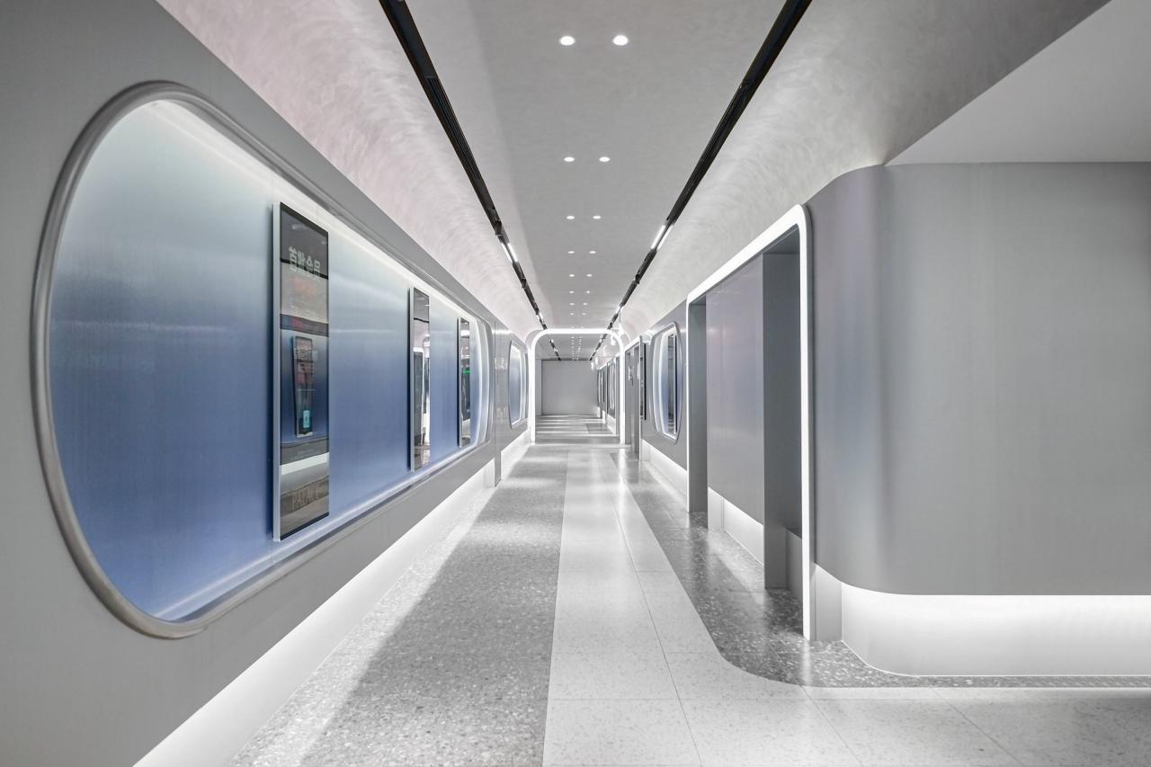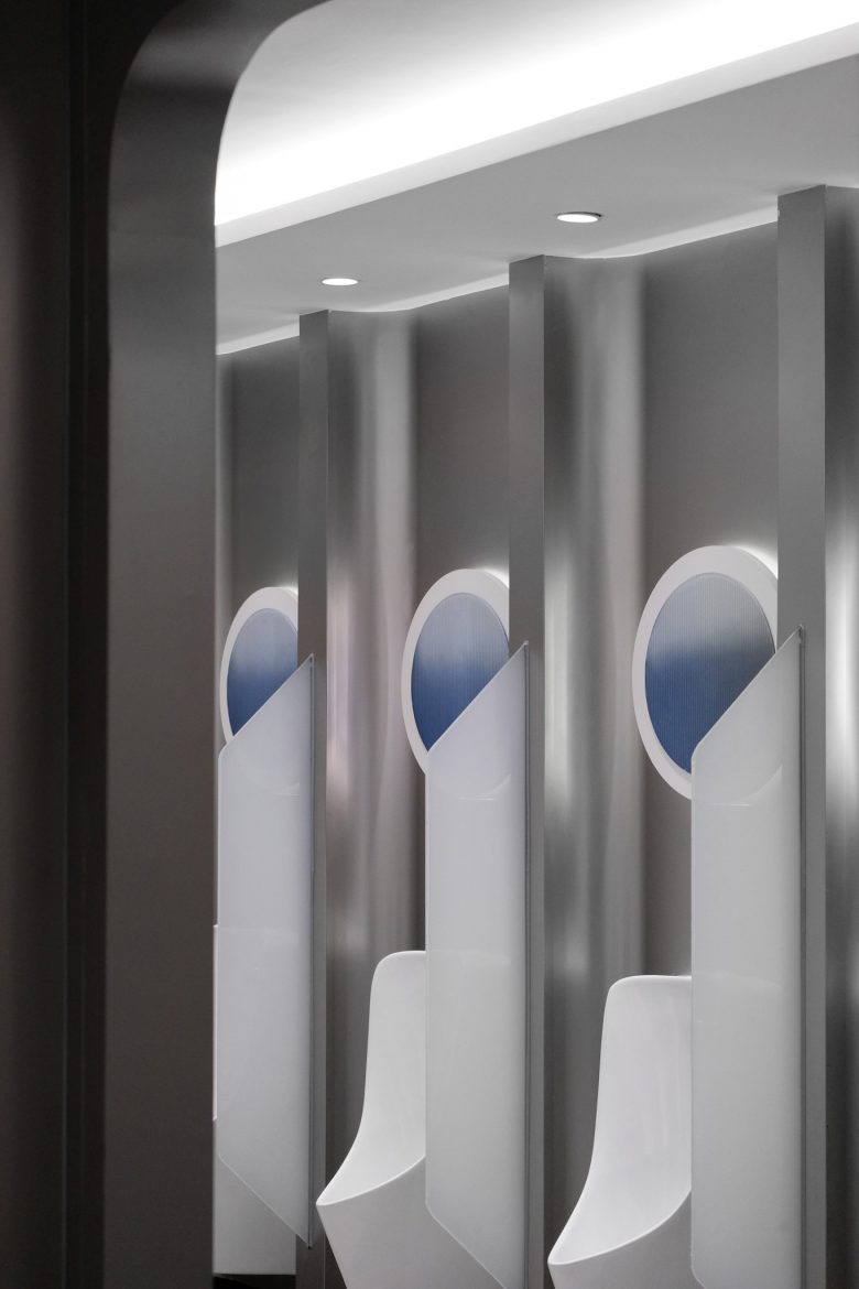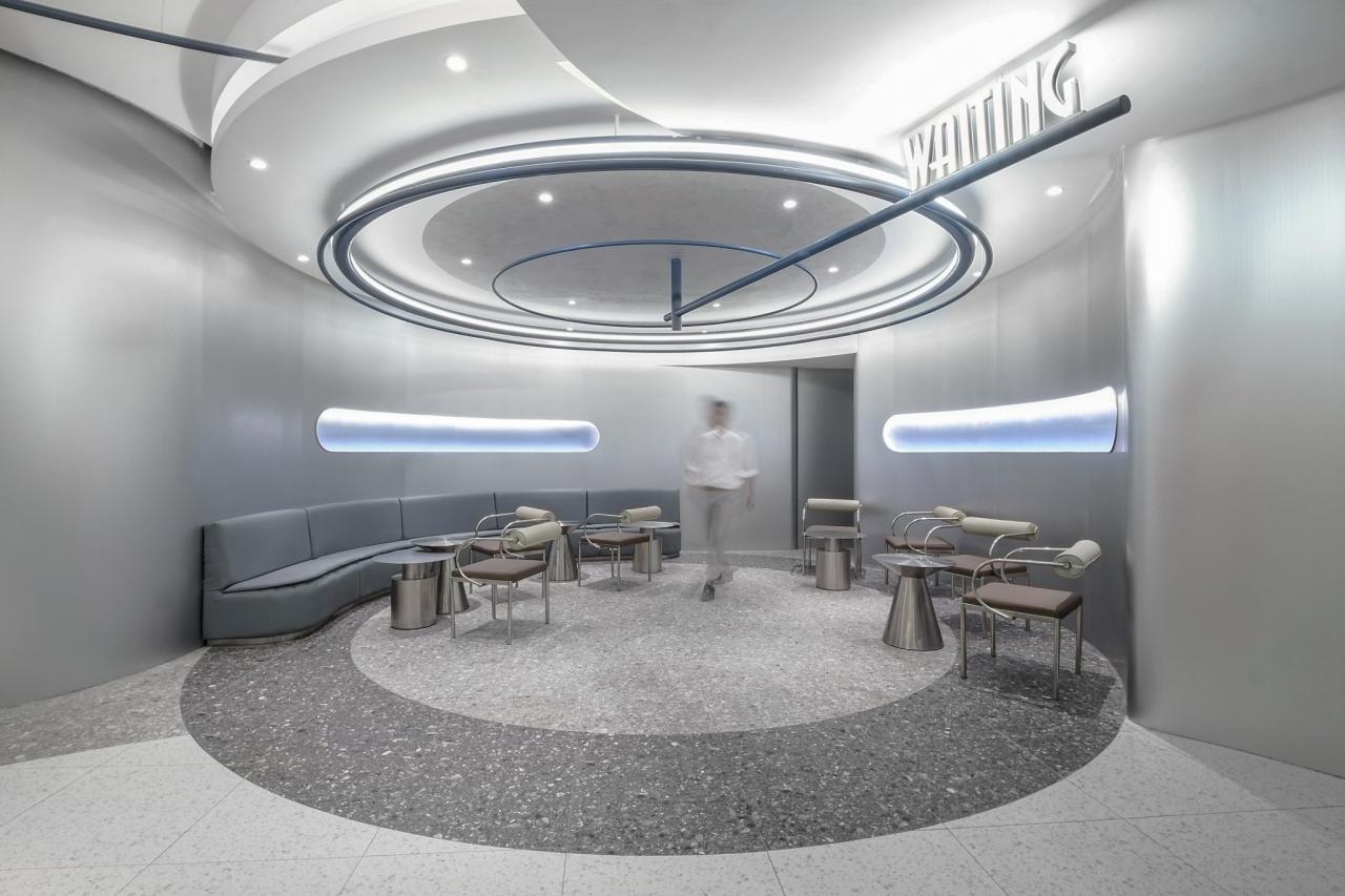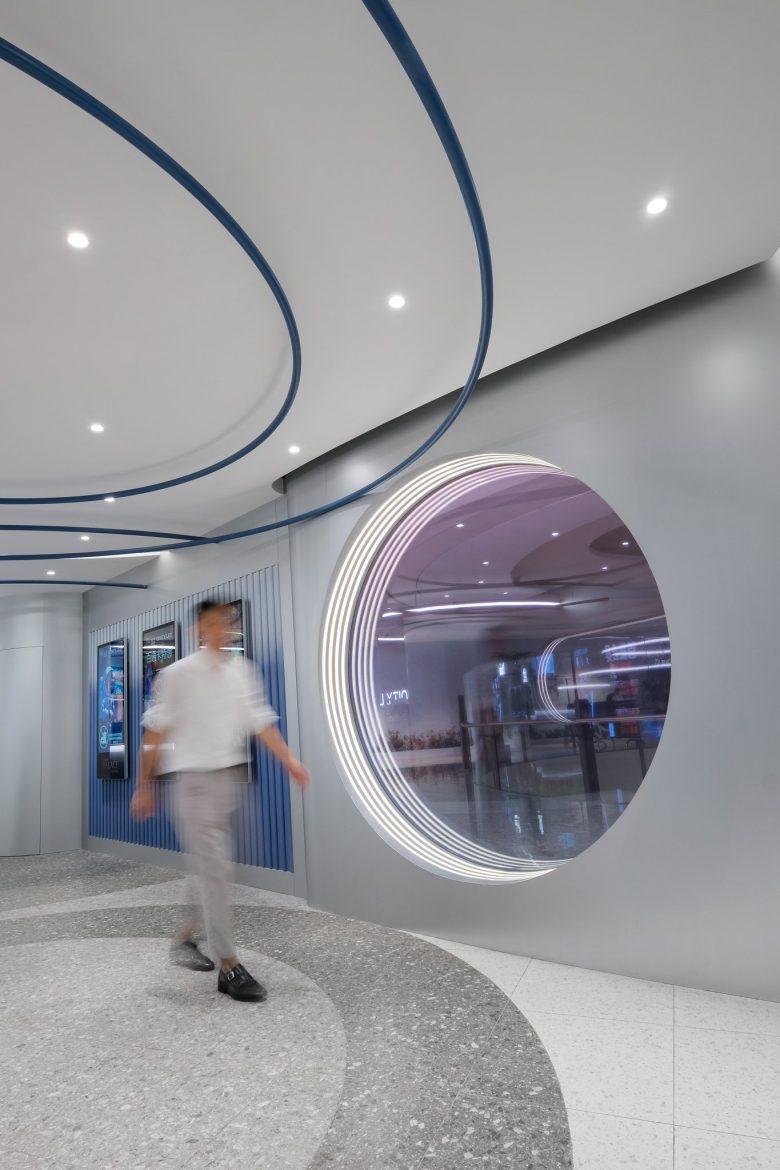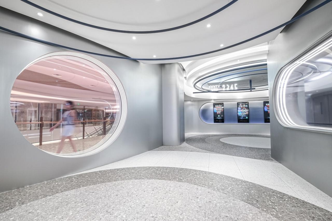 The circular form created by the star trails shapes the ceiling, becoming not only a visual focal point but also a portal connecting different times and spaces. Before entering the cinema hall, patrons pass through a “Dawnlight” corridor crafted with gradient glass. Patrons transition from reality to the cinematic space via a “Dawnlight” passage constructed of gradient glass. The designer expertly captures the ethereal qualities of dawn, that interplay of light and mystery bridging day and night, reality and dreams. This chromatic shift acts as a psychological cue, aiding patrons in transitioning from the mundane to the cinematic, preparing them for the immersive experience ahead. Journeying through this “Portal of Time,” audiences embark on adventures beyond reality within the virtual worlds created by film. Functionality is optimized through thoughtful spatial planning inspired by star trails and cosmic time. The lobby’s layout uses flowing curves to guide visitors naturally through ticket counters, concession stands, and waiting lounges, ensuring smooth customer flow.