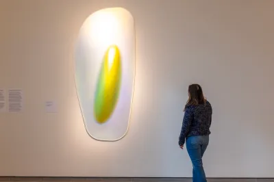 “What you’re seeing is only possible because of how she’s using these materials,” said Danielle O’Steen, the exhibition’s curator, pointing to Colón’s use of plastics and engineered pigments to create those surfaces that shift as viewers move around them.